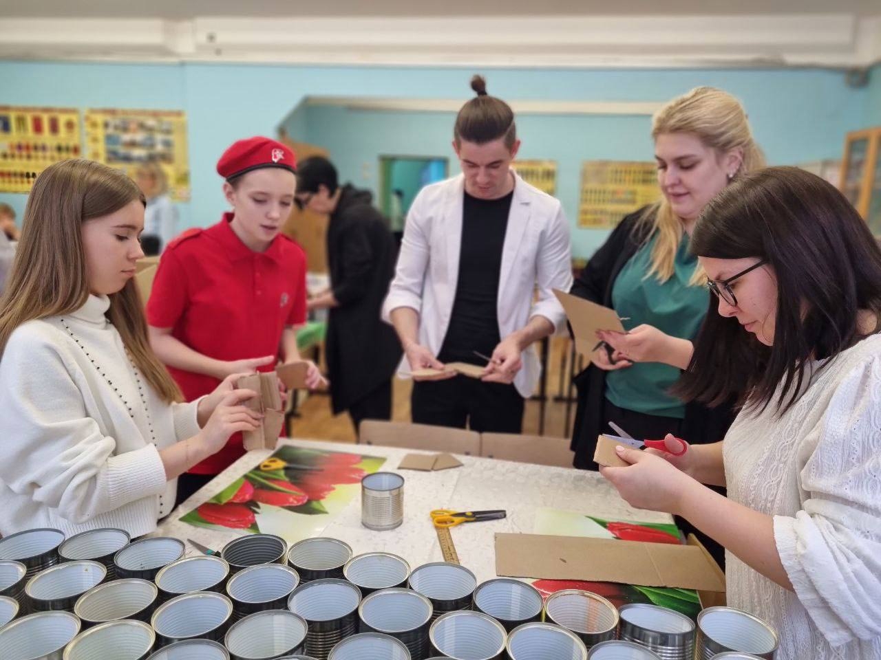 Участники акции разрезали картон и наполняли им банки, заполняли заготовки растопленным парафином. На каждой свече трогательное послание бойцам. Бойцы должны чувствовать, что дома их помнят, верят в скорую победу и как могут стараются поддержать и помочь.