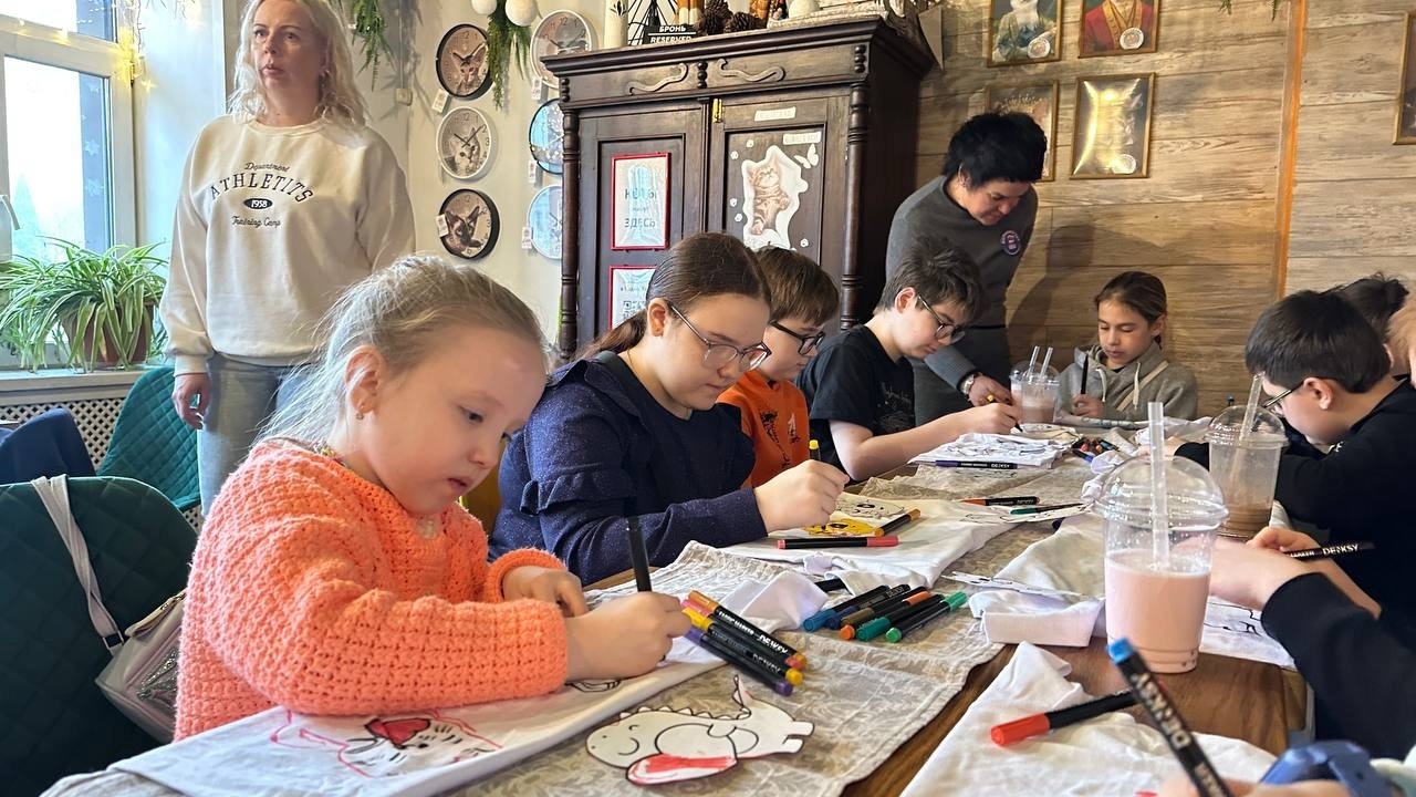 Ребят пригласили в Котокафе. Здесь член Молодёжного совета при главе городского округа Лобня, сотрудник исполнительного комитета местного отделения партии «Единая Россия», а также активный молодогвардеец Софья Крупельницкая провела для мальчишек и девчонок увлекательный мастер-класс по раскрашиванию футболок. Каждый участник смог проявить фантазию придумав свою уникальную роспись.