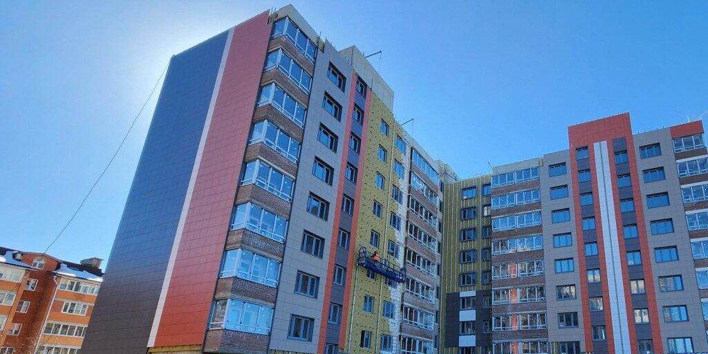 Фасад ЖК «Радужный» в Кашире обшивают четырехцветным керамогранитом