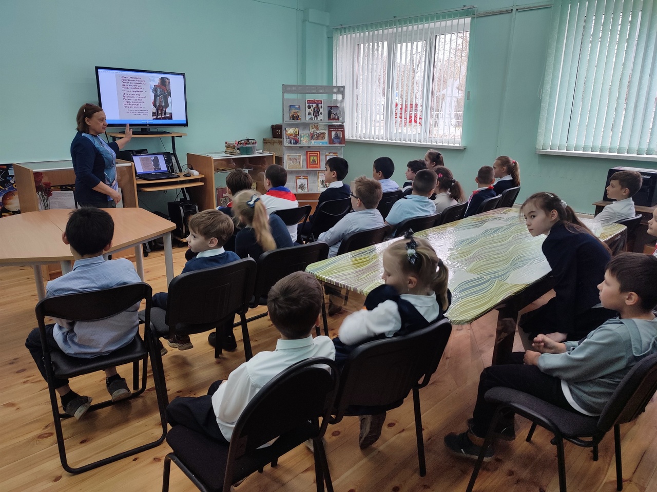 Сотрудники Тучковской поселковой библиотеки Рузского городского округа провели для второго класса местной школы №1» патриотический час «Мы гордимся славою героев».