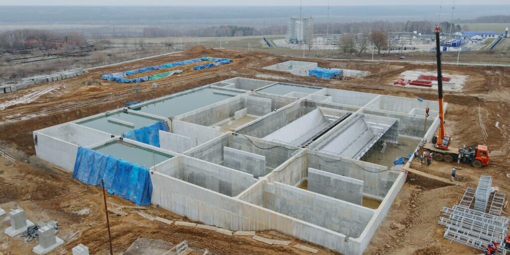 - Строительство основного здания очистных сооружений;