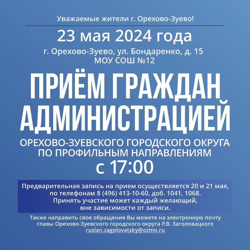 23 мая выездная администрация проведёт приём жителей в городе Орехово-Зуево.